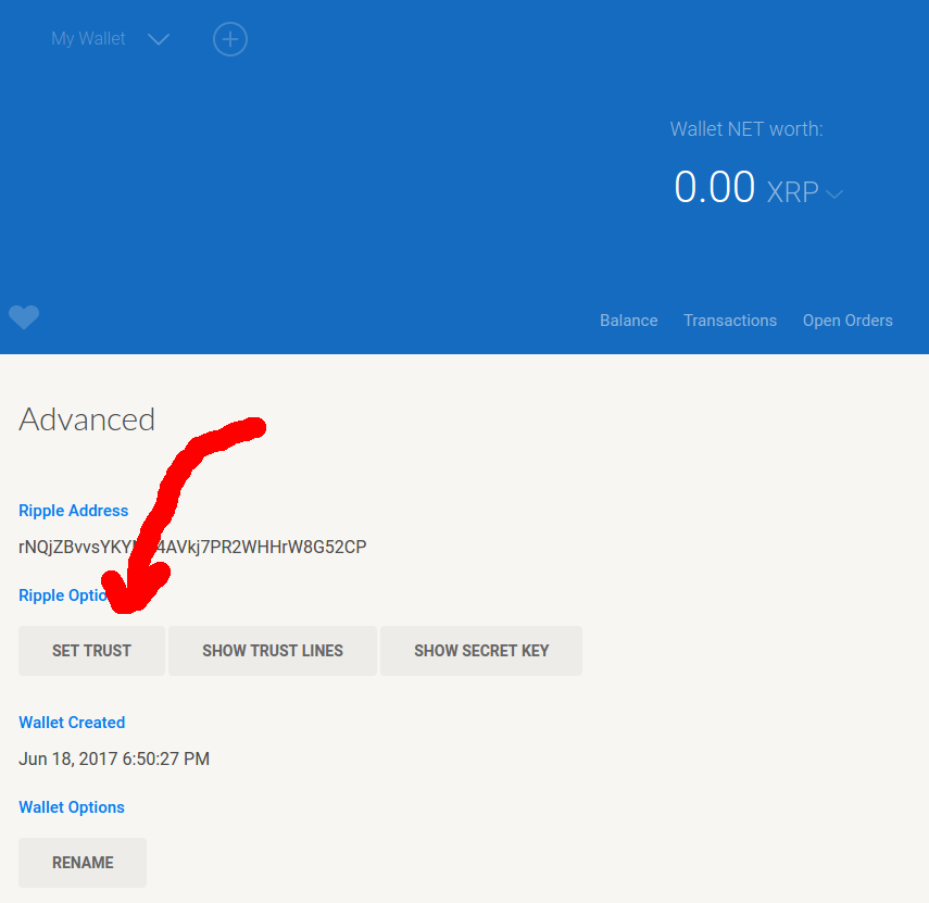 Set your trust line.