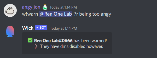 And all the other 'reason' entries are self explanatory. Hope this is helpful and if you join a server and *DON'T* see Wick on the sidebar, that team is probably doing something wrong. Feel free to send them this thread.
