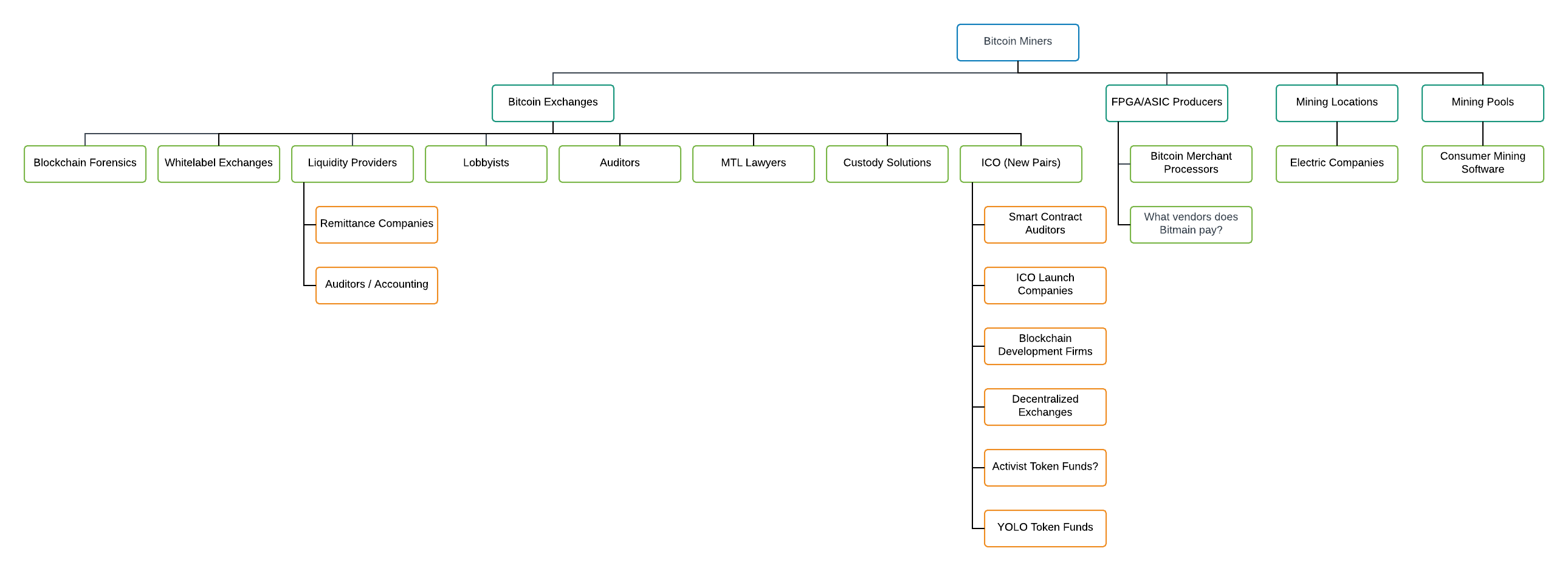 The next wave of businesses built (tier 3), were those to service those services built to serve miners. Bitcoin exchanges spawned a proliferation of vendors to help solve operational problems, including but not limited to liquidity, exchange software, custody, and interfacing with government. To a certain extent, ICOs and tokens became a vendor of exchanges, furthering the amount of pairs that could be listed. There are likely a lot of vendors that service Bitmain but I am not as familiar with the business so that aspect of my diagram is less filled out.